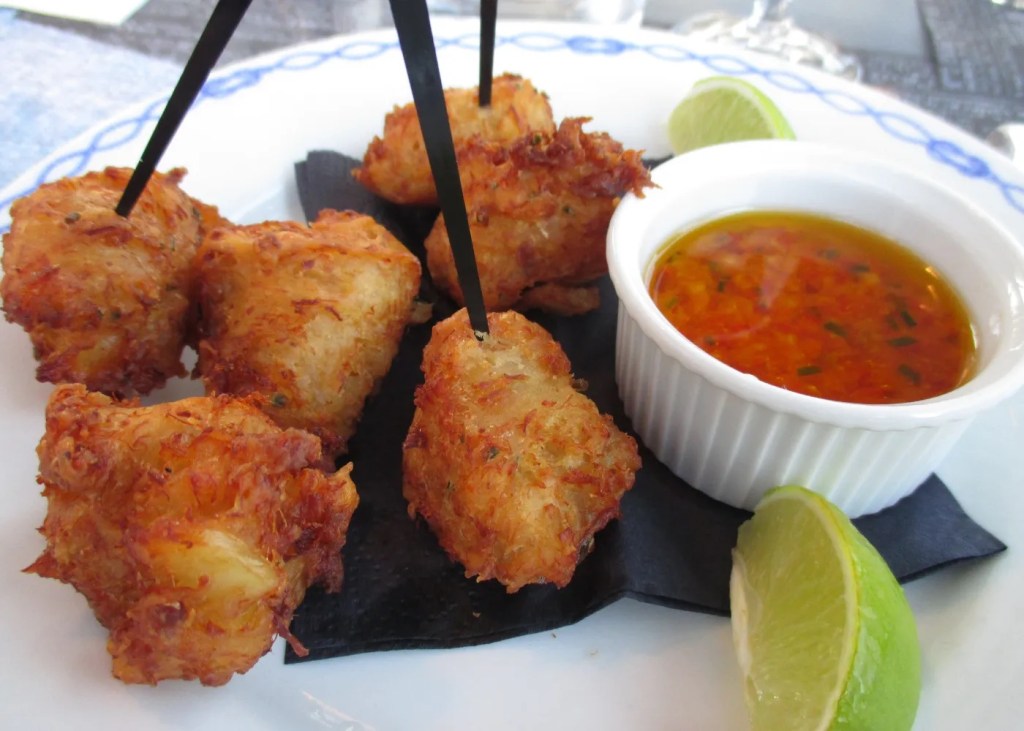Impossible de résister non plus à leurs fameux accras, que l’on retrouve en versions à la morue, aubergine, crevette, ou même banane plantain au lait de coco. Ces bouchées, tantôt douces tantôt pimentées, sont des petites merveilles de goût et de texture.