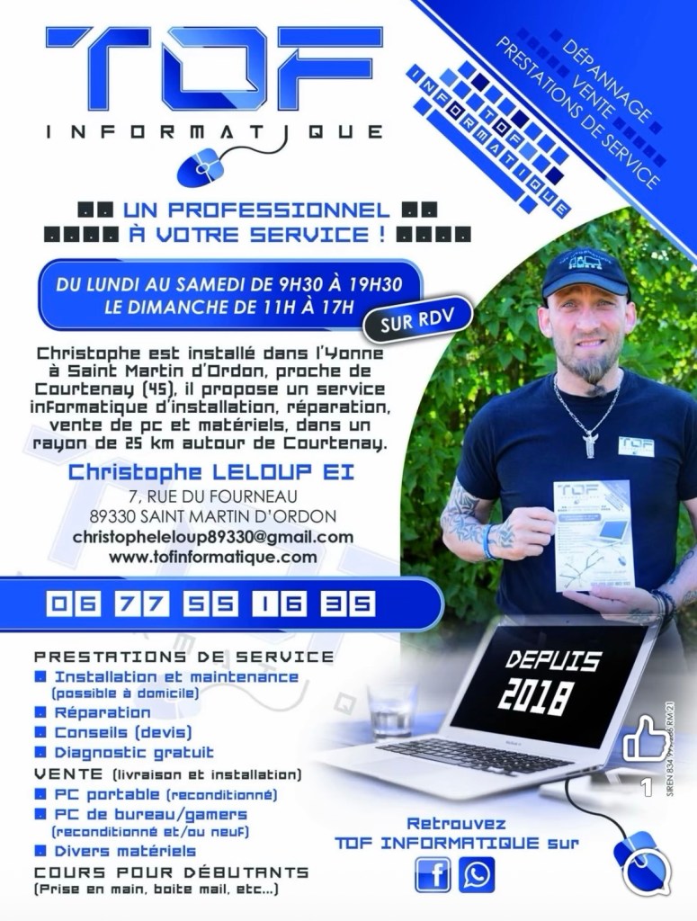 Depuis le 1er février 2018, il fait vivre TOF Informatique, une petite entreprise à son image : humaine, simple et proche des gens.